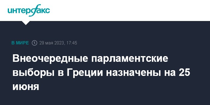 Внеочередные парламентские выборы в Греции назначены на 25 июня