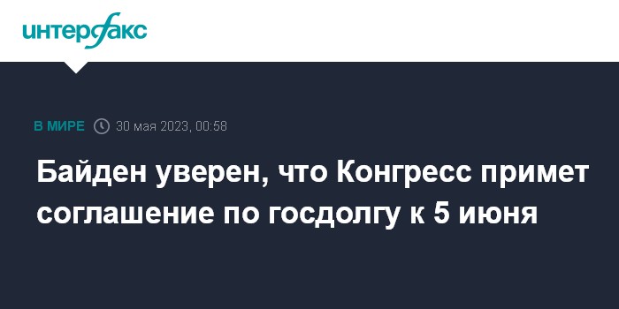 Байден уверен, что Конгресс примет соглашение по госдолгу к 5 июня