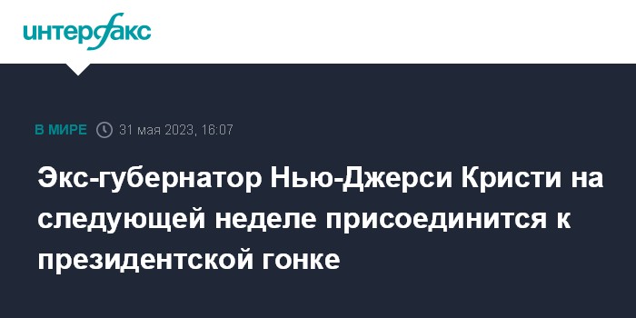Экс-губернатор Нью-Джерси Кристи на следующей неделе присоединится к президентской гонке