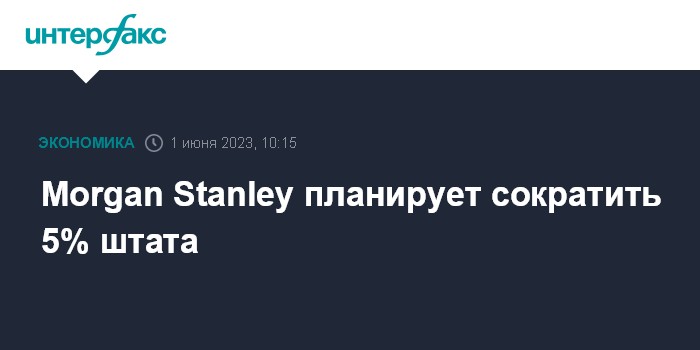 Москва. 1 июня. INTERFAX.RU - Morgan Stanley, один из крупнейших банков США, собирается уволить около 3,2 тысячи человек, или 5% штата, пишет MarketWatch со ссылкой на сообщение сопрезидента и главы направления wealth management банка Энди Саперштейна.
