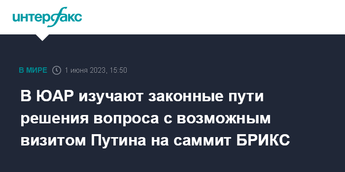 В ЮАР изучают законные пути решения вопроса с возможным визитом Путина на саммит БРИКС