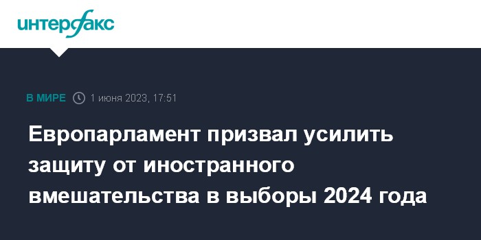 По мнению евродепутатов, "иностранное вмешательство, дезинформация и атаки на демократию, вероятно, будут продолжаться во все больших масштабах и станут более изощренными в преддверии выборов в Европейский парламент в июне 2024 года".