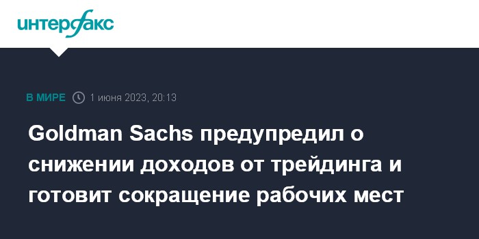 Goldman Sachs предупредил о снижении доходов от трейдинга и готовит сокращение рабочих мест