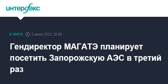 Москва. 2 июня. INTERFAX.RU - Гендиректор МАГАТЭ Рафаэль Гросси намерен в ближайшее время совершить визит Запорожскую АЭС (ЗАЭС) - в третий раз, сообщила пресс-служба агентства.
