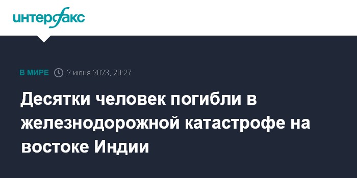 Москва. 2 июня. INTERFAX.RU - На востоке Индии в штате Одиша пассажирский поезд сошел с рельсов, часть его вагонов упали на соседние пути, и с ними столкнулся еще один пассажирский поезд, сообщает Hindustan Times со ссылкой на представителя железнодорожной компании. Не менее 50 человек погибли и сотни были ранены.