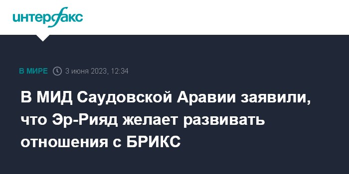 В МИД Саудовской Аравии заявили, что Эр-Рияд желает развивать отношения с БРИКС