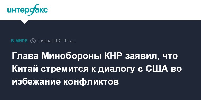 Глава Минобороны КНР заявил, что Китай стремится к диалогу с США во избежание конфликтов