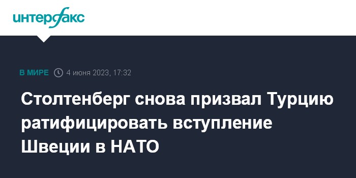 Генсек заявил, что хотел бы увидеть завершение ратификации вступления Швеции до саммита НАТО в Вильнюсе 11-12 июля. Кроме того, он сообщил о создании "постоянного механизма" НАТО и Турции для обсуждения шведской кандидатуры. Ближайшее заседание в рамках этого механизма запланировано на 12 июня.