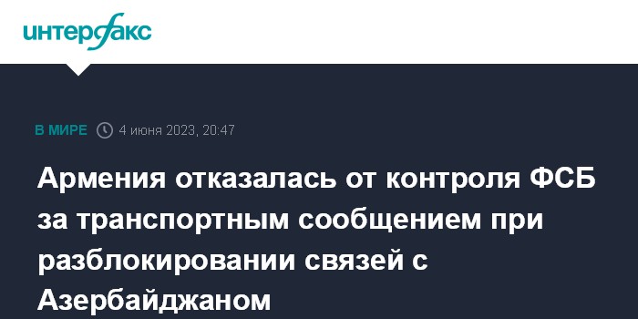 Армения отказалась от контроля ФСБ за транспортным сообщением при разблокировании связей с Азербайджаном