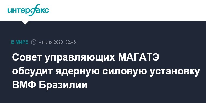 "Сессия Совета управляющих МАГАТЭ начнется в понедельник. (...) В повестке дня появится новый пункт - "Ядерная силовая установка ВМФ Бразилии", - написал он в своем телеграм-канале.