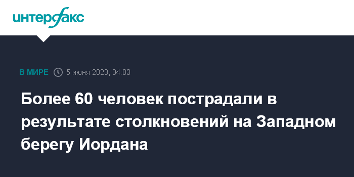 Москва. 5 июня. INTERFAX.RU - В результате столкновения израильских поселенцев с палестинцами на Западном берегу Иордана пострадали трое израильтян и 59 палестинцев, сообщила газета The Times of Israel.