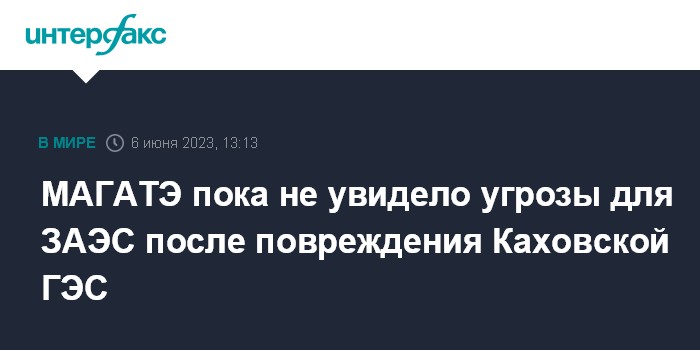 МАГАТЭ пока не увидело угрозы для ЗАЭС после повреждения Каховской ГЭС