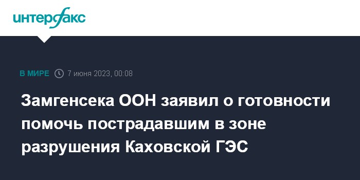 Замгенсека ООН заявил о готовности помочь пострадавшим в зоне разрушения Каховской ГЭС