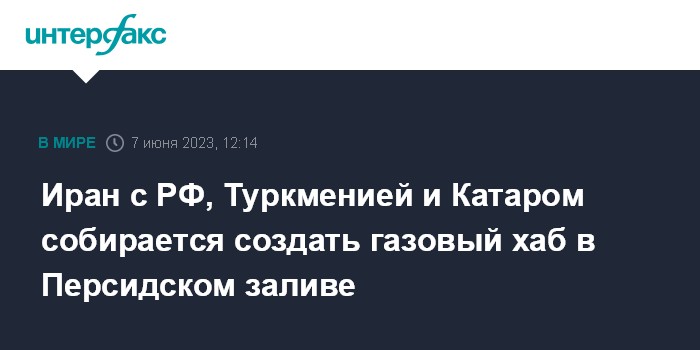 Москва. 7 июня. INTERFAX.RU - Иран вместе с Россией, Туркменистаном и Катаром намерен создать газовый хаб в Персидском заливе, сообщил в среду иранский министр нефтяной промышленности Джавад Оуджи.