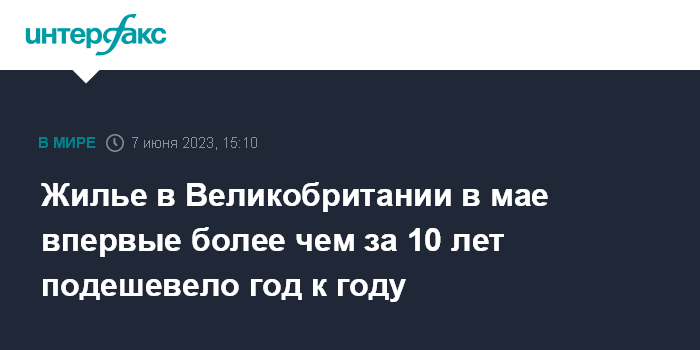 Жилье в Великобритании в мае впервые более чем за 10 лет подешевело год к году