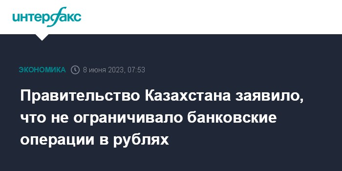 Москва. 8 июня. INTERFAX.RU - Правительство Казахстана не ограничивало деятельность банков по операциям в рублях, заявил вице-премьер - министр финансов республики Ерулан Жамаубаев.