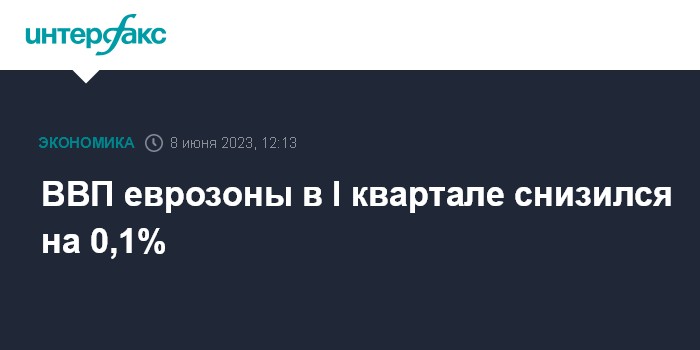 Москва. 8 июня. INTERFAX.RU - Экономика 19 стран еврозоны в первом квартале 2023 года снизилась на 0,1% к октябрю-декабрю 2022 года, показывают окончательные данные Eurostat.