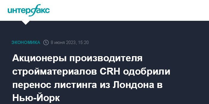 Акционеры производителя стройматериалов CRH одобрили перенос листинга из Лондона в Нью-Йорк