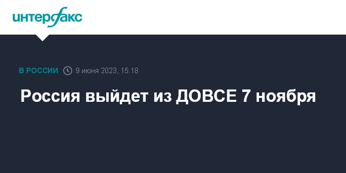 "В связи с этим российская сторона направила предусмотренные данным договором уведомления его депозитарию (Нидерландам) и остальным государствам-участникам через их посольства в Москве, а также через делегации в Совместной Консультативной группе по ДОВСЕ в Вене, - говорится в пресс-релизе министерства. - Россия уведомила все государства-участники о своём решении выйти из ДОВСЕ через 150 дней после направления уведомления. Таким образом, это произойдёт в 00:00 часов 7 ноября".