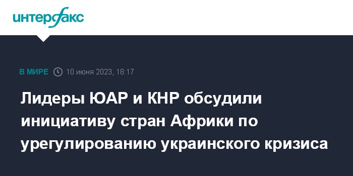 Москва. 10 июня. INTERFAX.RU - Президент ЮАР Сирил Рамафоса обсудил с председателем КНР Си Цзиньпином инициативу ряда африканских государств по урегулированию ситуации на Украине.