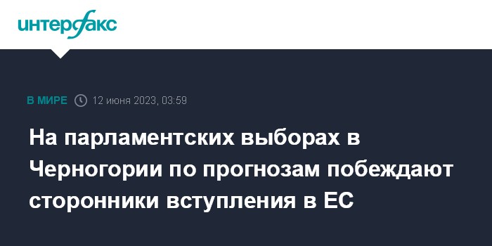 Москва. 12 июня. INTERFAX.RU - На прошедших в Черногории досрочных парламентских выборах, по предварительным данным, побеждает движение "Европа сейчас!", ориентирующееся на вступление страны в Евросоюз, сообщает агентство Associated Press (АР).