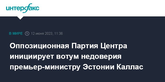 Москва. 12 июня. INTERFAX.RU - В Эстонии парламентская фракция оппозиционной партии Центра инициировала вотум недоверия премьер-министру Кае Каллас и обратилась к другим оппозиционным партиям за поддержкой.