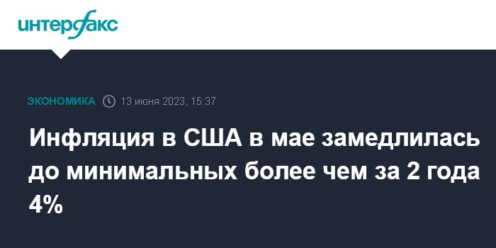 Инфляция в США в мае замедлилась до минимальных более чем за 2 года 4%