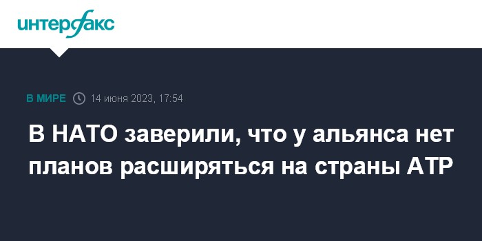 Москва. 14 июня. INTERFAX.RU - Генеральный секретарь НАТО Йенс Столтенберг заявил, что альянс усиливает партнерство со странами Азиатско-Тихоокеанского региона ввиду вызова, исходящего от КНР, но не планирует расширяться на Азию.