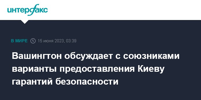 Москва. 15 июня. INTERFAX.RU - Администрация американского президента Джо Байдена работает с союзниками над вариантами предоставления Украине гарантий безопасности, которые сохранились бы по окончании российской специальной военной операции, сообщает Politico, сославшись на неназванного представителя совета нацбезопасности США.