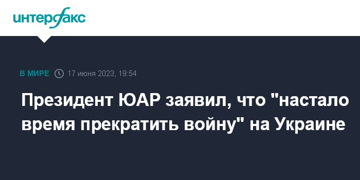 Москва. 17 июня. INTERFAX.RU - Наступило время прекратить войну на Украине, заявил президент ЮАР Сирил Рамафоса.