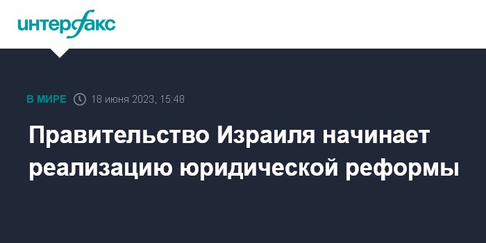 Москва. 18 июня. INTERFAX.RU - Премьер-министр Израиля Биньямин Нетаньяху заявил, что его правительство начинает предпринимать шаги по реализации юридической реформы, вызвавшей ранее в этом году многотысячные акции протеста в стране, передают израильские СМИ.