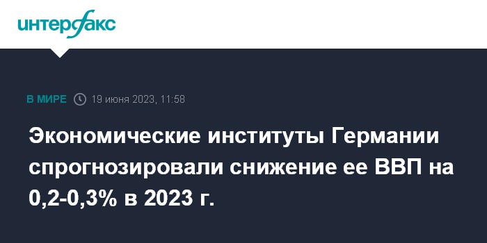Москва. 19 июня. INTERFAX.RU - ВВП Германии по итогам 2023 года покажет незначительное снижение, прогнозируют два ведущих исследовательских института страны.