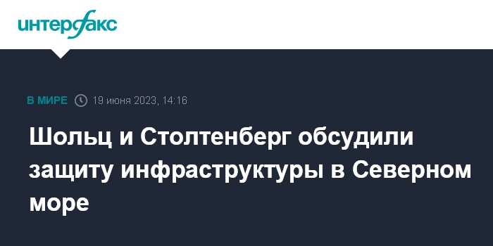 Москва. 19 июня. INTERFAX.RU - Канцлер Германии Олаф Шольц и генсек НАТО Йенс Столтенберг в понедельник обсудили способы защиты важнейших объектов инфраструктуры в Северном море, в том числе и с помощью нового морского центра альянса.