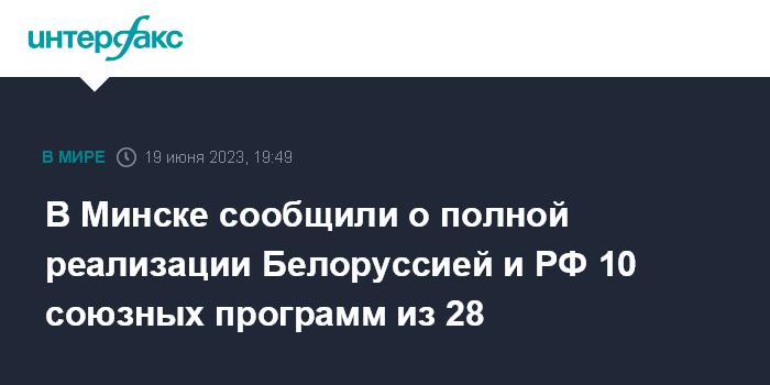 В Минске сообщили о полной реализации Белоруссией и РФ 10 союзных программ из 28