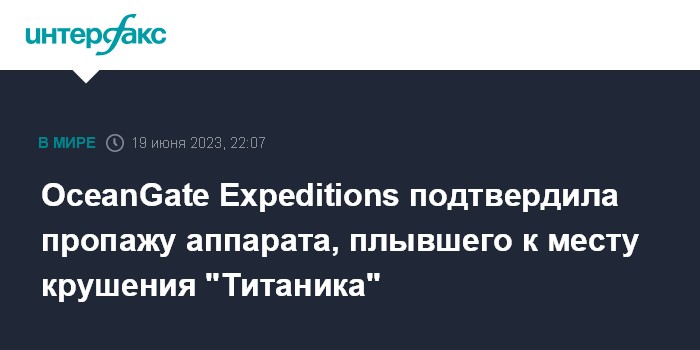OceanGate Expeditions подтвердила пропажу аппарата, плывшего к месту крушения "Титаника"