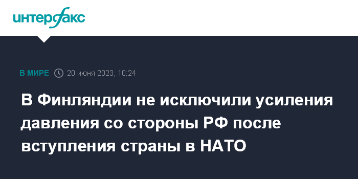Москва. 20 июня. INTERFAX.RU - Президент Финляндии Саули Ниинистё не исключил, что давление на его страну со стороны России после вступления в НАТО будет усиливаться.