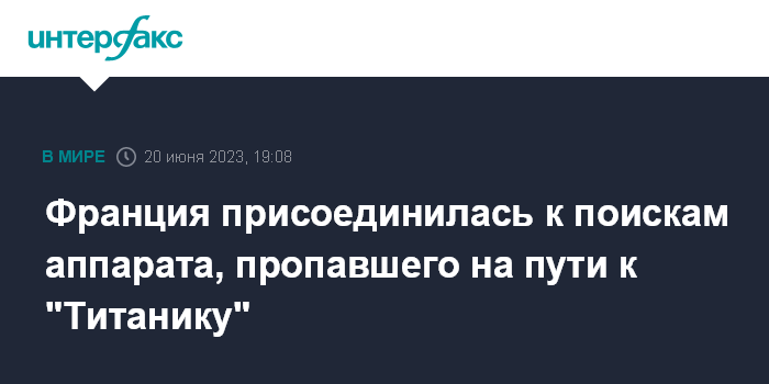 Москва. 20 июня. INTERFAX.RU - Французский океанографический исследовательский институт по освоению моря IFREMER направил судно для помощи в поисках подводного аппарата, пропавшего в Атлантике во время погружения к обломкам "Титаника", сообщает во вторник телеканал BFMTV.