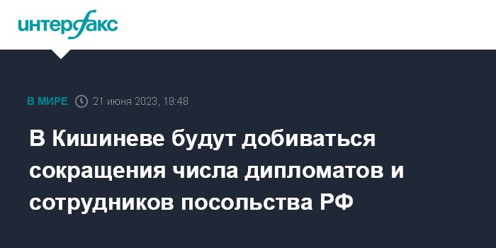 Москва. 21 июня. INTERFAX.RU - Депутат от правящей в Молдавии партии "Действие и солидарность" (PAS) Андриан Кептонар заявил, что Кишинев намерен добиться сокращения количества дипломатов и сотрудников посольства России в республике.