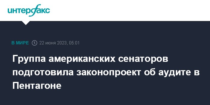 Москва. 22 июня. INTERFAX.RU - Группа американских сенаторов, представляющих как республиканцев, так и демократов, внесла на рассмотрение законопроект, требующий проведения министерством обороны тщательной финансовой проверки в ведомстве, сообщило издание The Hill.