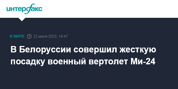 Москва. 22 июня. INTERFAX.RU - В Белоруссии совершил жесткую посадку вертолет Ми-24, пострадали члены экипажа, сообщило министерство обороны республики в четверг.