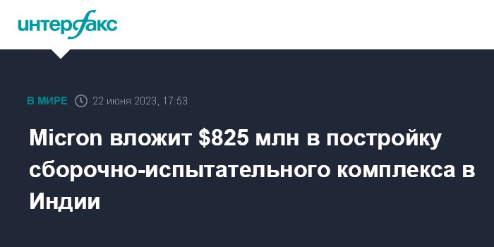 Micron вложит $825 млн в постройку сборочно-испытательного комплекса в Индии