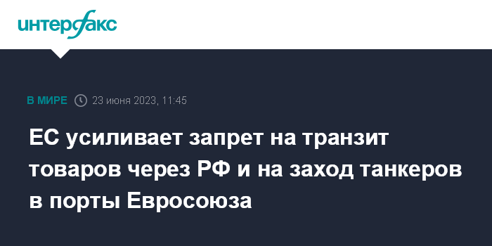 ЕС усиливает запрет на транзит товаров через РФ и на заход танкеров в порты Евросоюза