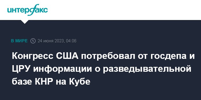 Конгресс США потребовал от госдепа и ЦРУ информации о разведывательной базе КНР на Кубе