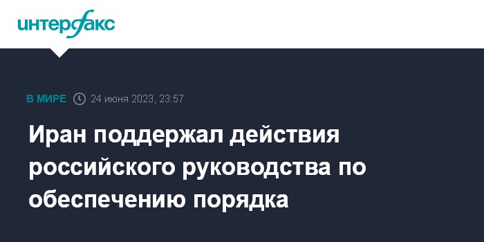 "С иранской стороны выражена поддержка действиям российского руководства по обеспечению конституционного порядка", - говорится в сообщении.