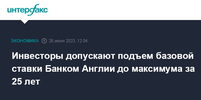Инвесторы допускают подъем базовой ставки Банком Англии до максимума за 25 лет