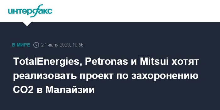 Москва. 27 июня. INTERFAX.RU - Французская TotalEnergies, малазийская Petronas и японская Mitsui&Co. договорились о разработке проекта по хранению углерода в Малайзии для промышленных предприятий Юго-Восточной Азии.
