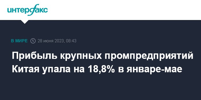 Прибыль крупных промпредприятий Китая упала на 18,8% в январе-мае
