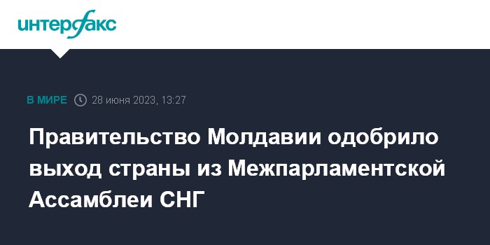 Москва. 28 июня. INTERFAX.RU - Правительство Молдавии на заседании в среду одобрило проект закона о денонсации Конвенции о Межпарламентской Ассамблее государств-участников СНГ.