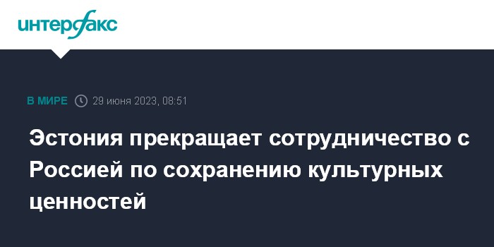 Москва. 29 июня. INTERFAX.RU - Правительство Эстонии намерено расторгнуть соглашение о сотрудничестве с Россией по сохранению культурных ценностей.