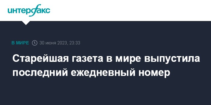 Москва. 30 июня. INTERFAX.RU - Австрийская газета Wiener Zeitung, которая в течение трех с лишним столетий выходила на бумаге каждый день, прекратила эту практику. Теперь каждый день будет выпускаться только цифровая версия, а печатными планирует оставить ежемесячные дайджесты.